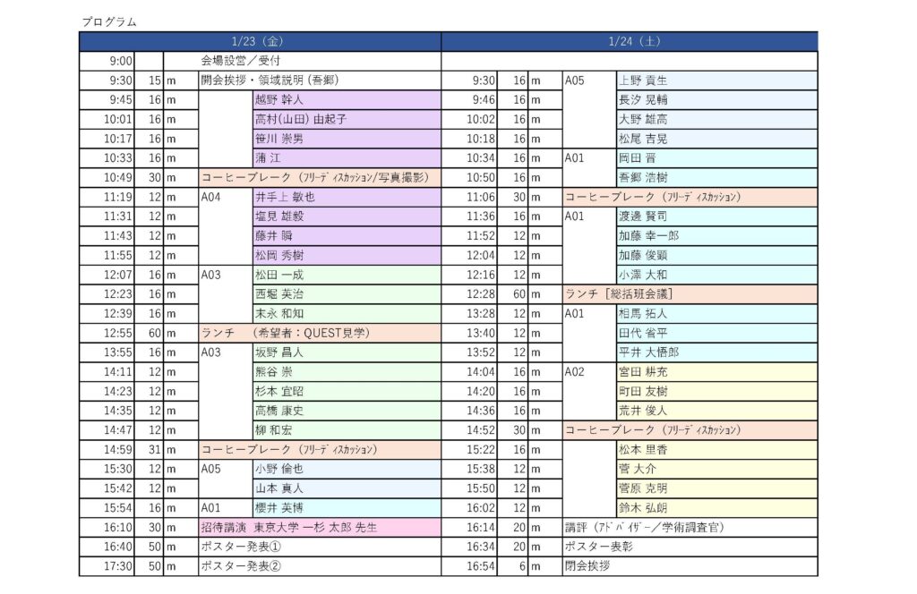 計画班[16分]:口頭発表 12分+質疑応答 4分